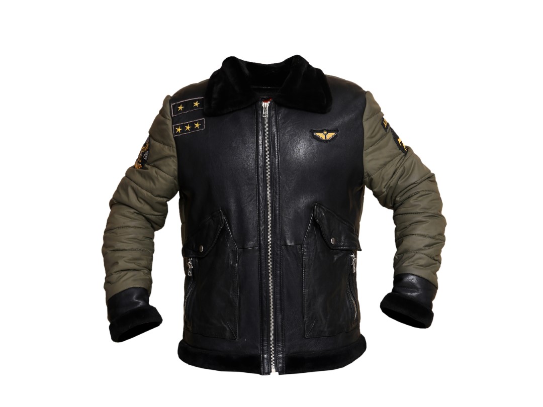 The high-quality leather body ensures durability and long-lasting wear, while the soft inner lining keeps you comfortable during colder days. Featuring embroidered patches, flap and zipper pockets, and a secure front zipper closure, this bomber jacket blends military-inspired details with modern style.