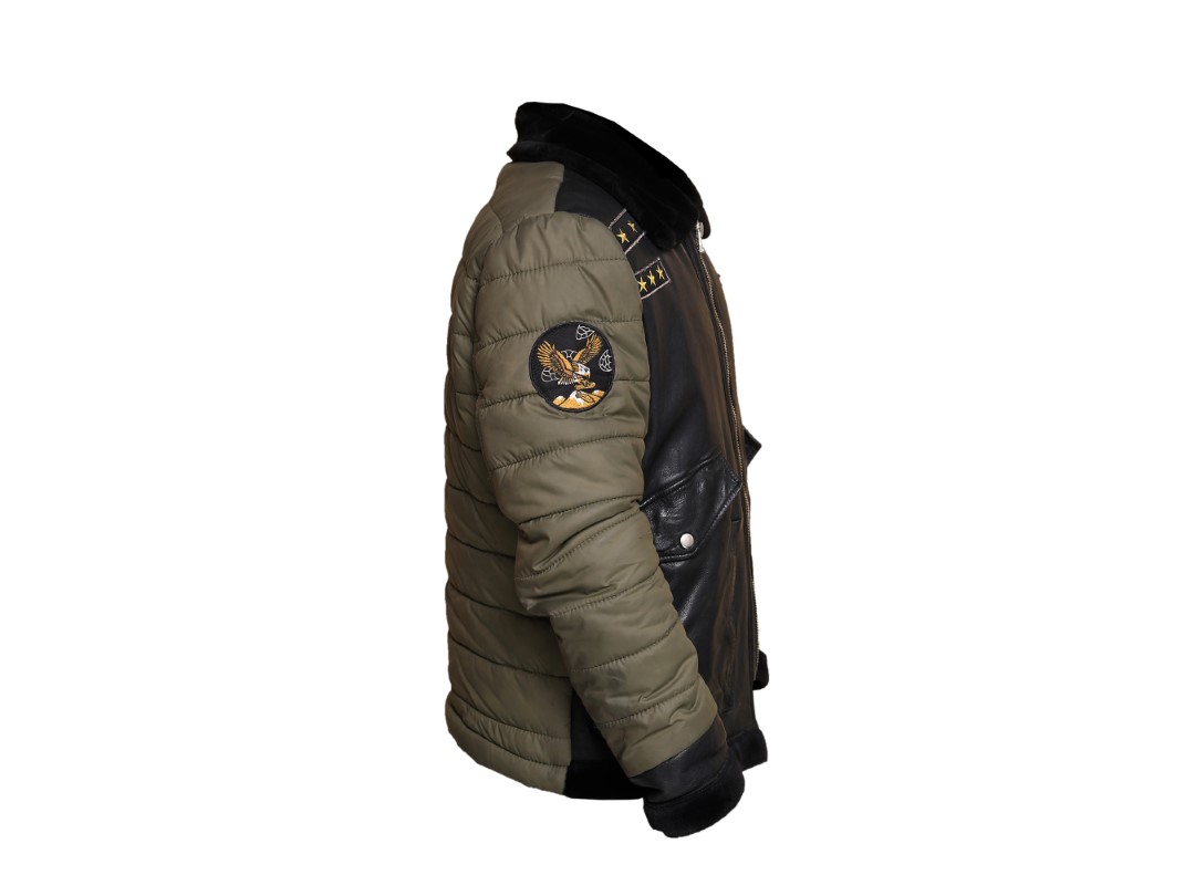 Stay warm, stylish, and confident with our Men’s Military Bomber Leather Jacket, designed for those who appreciate both fashion and functionality. This jacket combines a premium leather front with quilted olive sleeves, giving it a bold and rugged appeal that stands out anywhere.